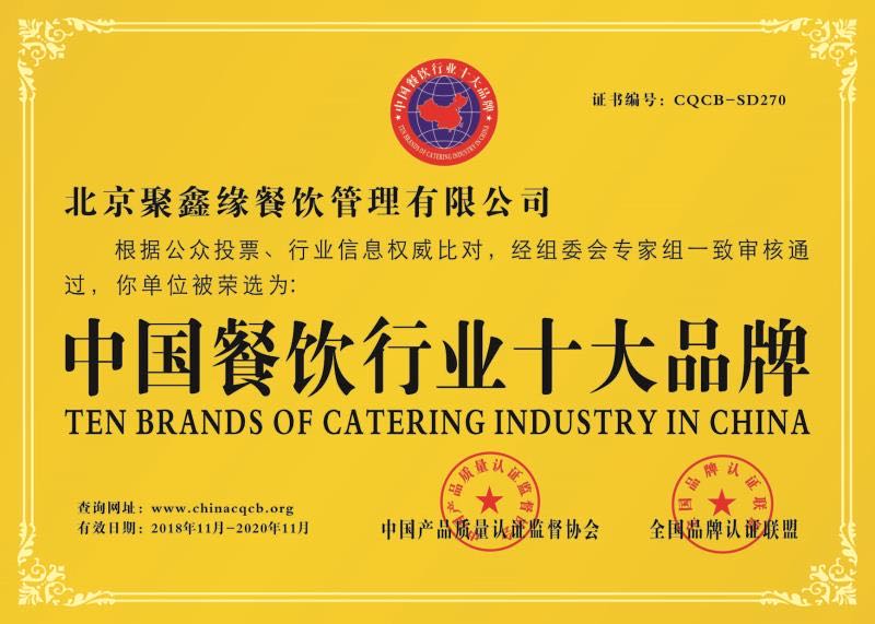 北京聚鑫緣餐飲管理有限公司是由目前餐飲界領(lǐng)軍人物,全國飯店業(yè)高級評委、國家級技能競賽裁判員、高級營養(yǎng)配餐師、2005年第三屆國際食神爭霸賽個人金獎、銀獎得主、中國烹飪大師,張寶田先生創(chuàng)辦,注冊資金:3888萬元,北京市政府采購定點服務單位,公司成立以來相關(guān)業(yè)務已覆蓋全國部分城市。本公司是國家有關(guān)部委批準建立的以管理與經(jīng)營各企事業(yè)、大中專院校餐廳、機關(guān)、食堂承包托管、酒店酒樓人才勞務輸出、前期策劃籌建、餐飲管理咨詢、廚房設(shè)備規(guī)劃安裝、糧油及原材料配送等綜合性后勤服務機構(gòu)。